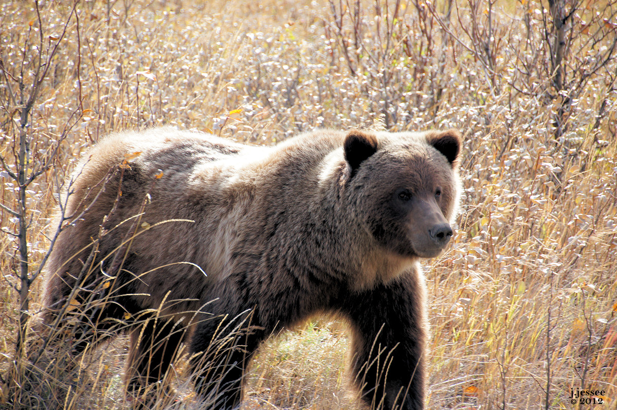 What a beautiful creature! What is most amazing is how soft and deep his fur appears in the golden light. Your photos are gorgeous; it almost looks like he was posing for you. Even from the truck, I don’t think my photos would turn out half as well. My hands would be shaking too much. Grizzlies can be terrifying hunters.