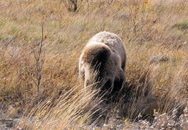 This “griz” was right on the side of the road, digging up roots and eating them.  We took photos from the truck.  He paid us no heed at all.
