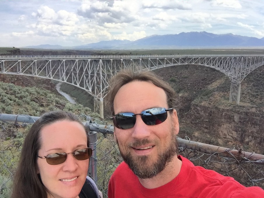Jack and Judy at the Rio Grande Gorge Bridge near Taos, New Mexico Published May 9, 2017 at 1200 × 900 in Loud hail storm in the mountains of New Mexico Next → The day before we were enjoying the beautiful (but cool) weather of Taos. Trackbacks are closed, but you can post a comment.