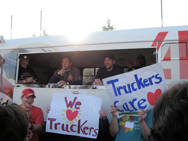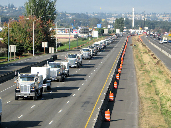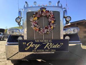 Jack participated in the Joy Wiebe Memorial Truck Convoy last Saturday that started at the Colville yard (Joy worked for Colville) on Van Horn Way and ended in Fox for a gathering. There are 4 videos here with the 1st, 2nd and 4th being sped up versions of the convoy, as viewed from the dash cam in Jack’s truck. The 3rd video in the sequence is “Joy’s Last Call” and comments from truckers over the radio, then the convoy goes by the pipeline viewing station where many onlookers are gathered and Jack lays on the horn like he was told to do. There were 70-80 trucks in the convoy.