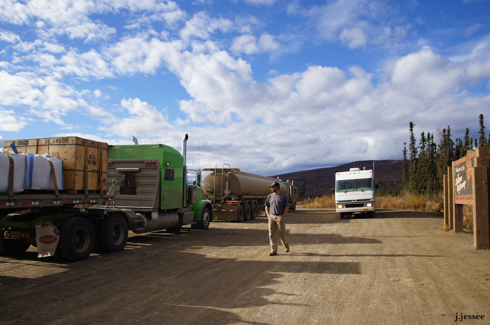We woke up at what the truckers call 62 Mile, a good-sized pullout used by truckers and tourist buses and just anyone traveling the road. It was