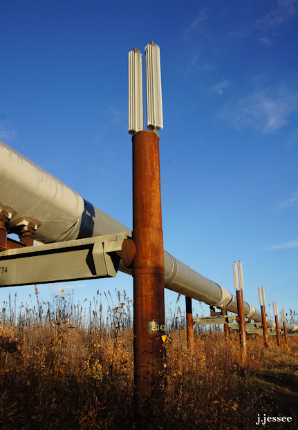 You’ll see Davidson Ditch, a water pipe built in 1920s, that runs 90 miles along the Steese Highway. It used to bring about 180,000 gallons of water per day to the gold dredges in Fox, Alaska from the Chatanika River.