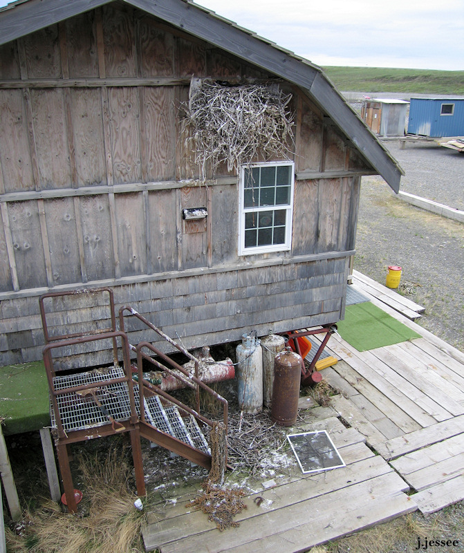 You can see how much of a mess the raven family has made with guano all over the steps, propane tanks and the side of the building.