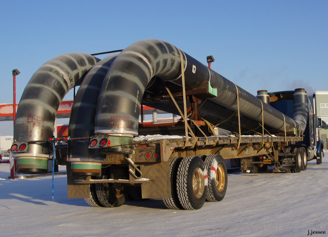 There’s a section of the Trans-Alaska Pipeline north of Fairbanks that is threatened by thawing permafrost, and steps are being taken to prevent or mitigate damage. Jack says the work is not visible from the Dalton. We’ll provide photos in the future if they become available, but for now here are some of the thermosyphons that are used to keep the permafrost cold under the pipeline, photos taken by us several years ago at about 26 Mile Dalton.