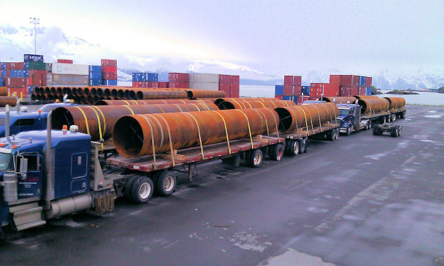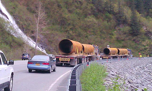 Here are some miscellaneous photos that Jack took a couple of years back at a marine dock in Valdez. He was there in May of 2012, hauling items for the railroad bridge that’s now finished (although there aren’t tracks leading to or away from it).