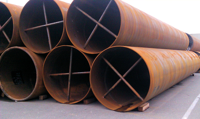 Sheet piling (which gets pounded into the ground to create an embankment) and miscellaneous steel items.