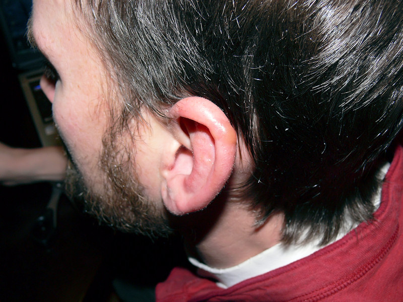 Jack's Frostbit EarJack might have an inner furnace, but even he can misgauge temperatures when wind is a factor.  A few years ago at 20 above, Jack frostbit his ear.  This was a serious miscalculation on his part, and it shows what even a minor breeze can result in when it’s still above zero.  (You can see the blister on the outer part but if you notice, almost half of the ear is red and swollen.)